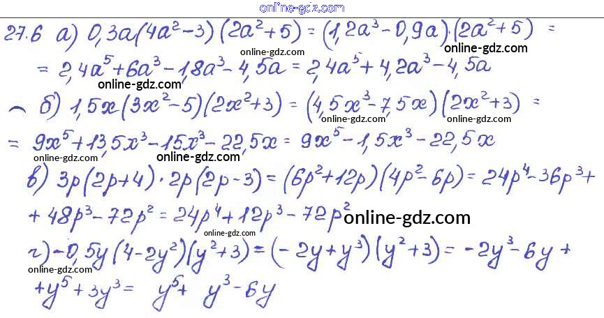 Готовые домашние задания по Алгебре за 7 класс Задачник Мордкович, Александрова Базовый уровень 2013 - § 27. Умножение многочлена на многочлен Глава 6 6