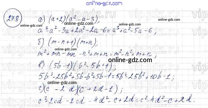 Готовые домашние задания по Алгебре за 7 класс Задачник Мордкович, Александрова Базовый уровень 2013 - § 27. Умножение многочлена на многочлен Глава 6 8