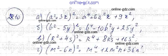 Готовые домашние задания по Алгебре за 7 класс Задачник Мордкович, Александрова Базовый уровень 2013 - § 28. Формулы сокращенного умножения Глава 6 10