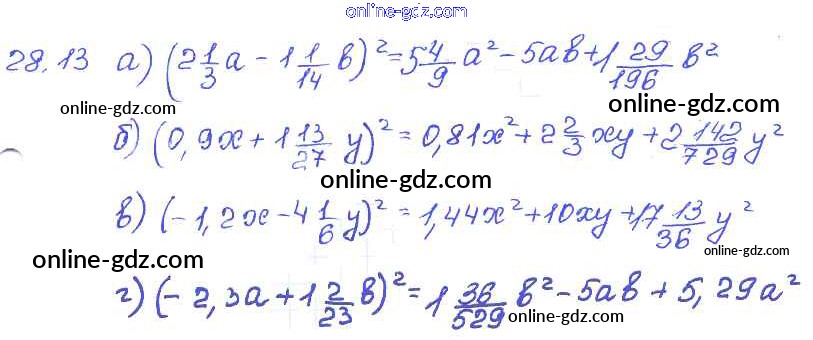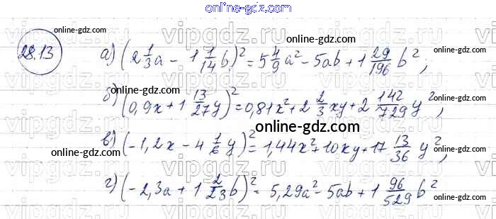 Готовые домашние задания по Алгебре за 7 класс Задачник Мордкович, Александрова Базовый уровень 2013 - § 28. Формулы сокращенного умножения Глава 6 13