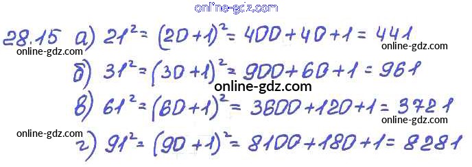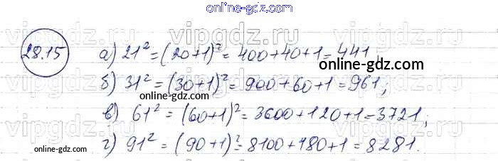 Готовые домашние задания по Алгебре за 7 класс Задачник Мордкович, Александрова Базовый уровень 2013 - § 28. Формулы сокращенного умножения Глава 6 15