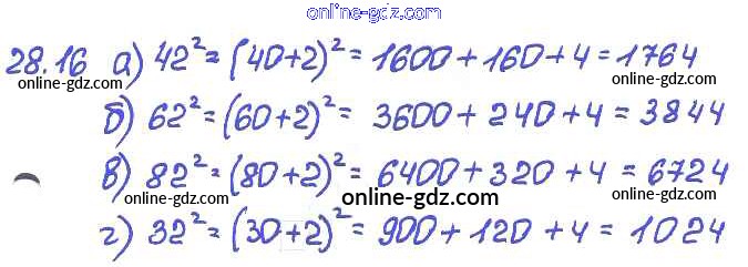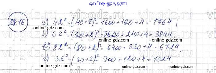 Готовые домашние задания по Алгебре за 7 класс Задачник Мордкович, Александрова Базовый уровень 2013 - § 28. Формулы сокращенного умножения Глава 6 16
