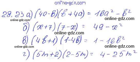 Готовые домашние задания по Алгебре за 7 класс Задачник Мордкович, Александрова Базовый уровень 2013 - § 28. Формулы сокращенного умножения Глава 6 23