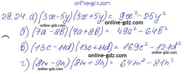 Готовые домашние задания по Алгебре за 7 класс Задачник Мордкович, Александрова Базовый уровень 2013 - § 28. Формулы сокращенного умножения Глава 6 24
