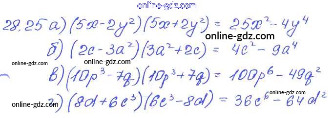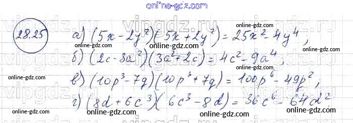 Готовые домашние задания по Алгебре за 7 класс Задачник Мордкович, Александрова Базовый уровень 2013 - § 28. Формулы сокращенного умножения Глава 6 25