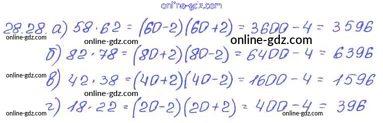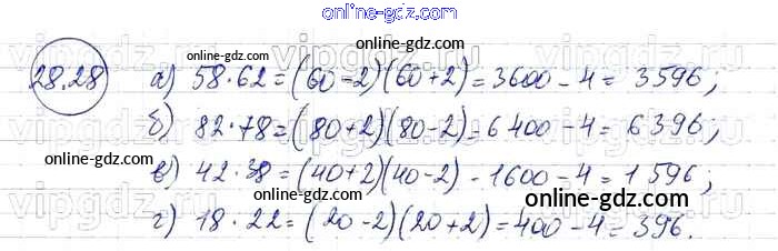 Готовые домашние задания по Алгебре за 7 класс Задачник Мордкович, Александрова Базовый уровень 2013 - § 28. Формулы сокращенного умножения Глава 6 28