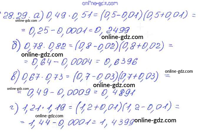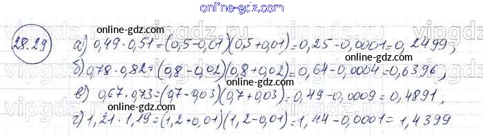Готовые домашние задания по Алгебре за 7 класс Задачник Мордкович, Александрова Базовый уровень 2013 - § 28. Формулы сокращенного умножения Глава 6 29