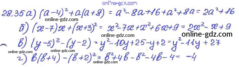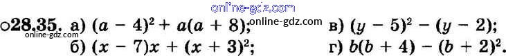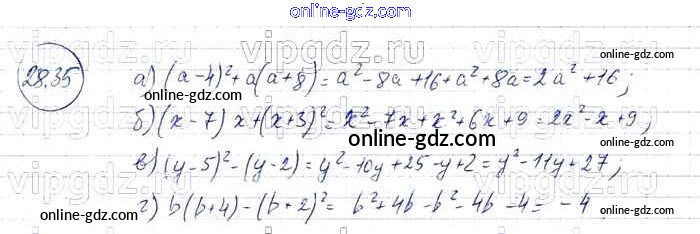Готовые домашние задания по Алгебре за 7 класс Задачник Мордкович, Александрова Базовый уровень 2013 - § 28. Формулы сокращенного умножения Глава 6 35