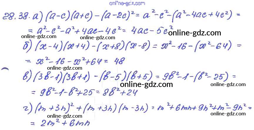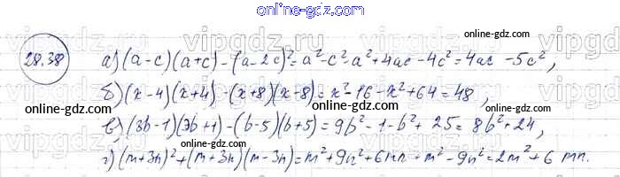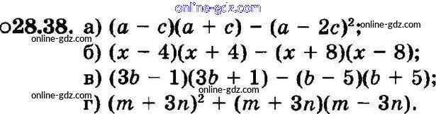 Готовые домашние задания по Алгебре за 7 класс Задачник Мордкович, Александрова Базовый уровень 2013 - § 28. Формулы сокращенного умножения Глава 6 38