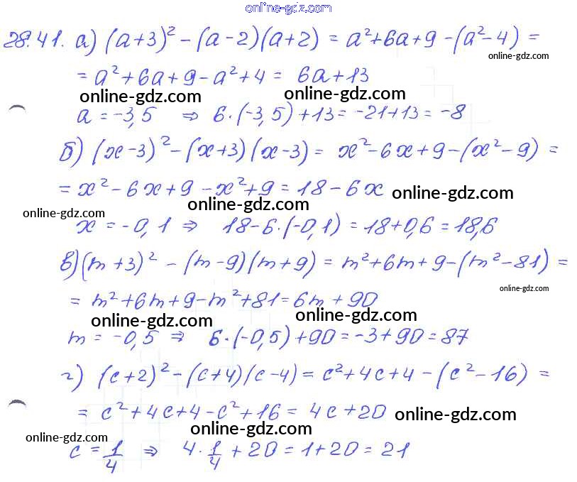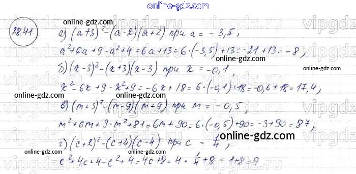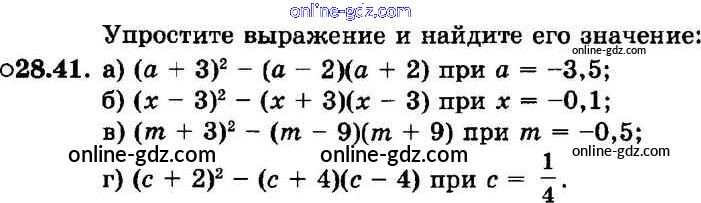 Готовые домашние задания по Алгебре за 7 класс Задачник Мордкович, Александрова Базовый уровень 2013 - § 28. Формулы сокращенного умножения Глава 6 41