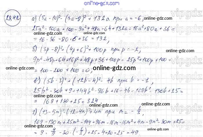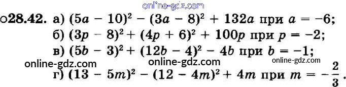 Готовые домашние задания по Алгебре за 7 класс Задачник Мордкович, Александрова Базовый уровень 2013 - § 28. Формулы сокращенного умножения Глава 6 42