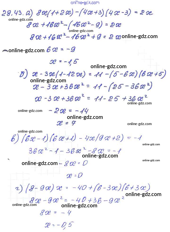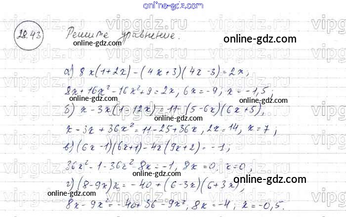 Готовые домашние задания по Алгебре за 7 класс Задачник Мордкович, Александрова Базовый уровень 2013 - § 28. Формулы сокращенного умножения Глава 6 43