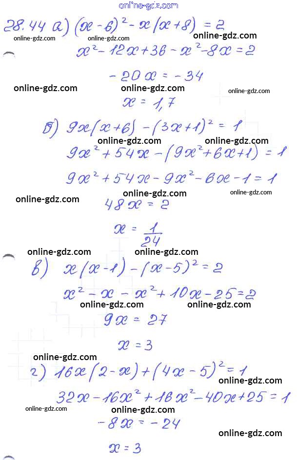Готовые домашние задания по Алгебре за 7 класс Задачник Мордкович, Александрова Базовый уровень 2013 - § 28. Формулы сокращенного умножения Глава 6 44