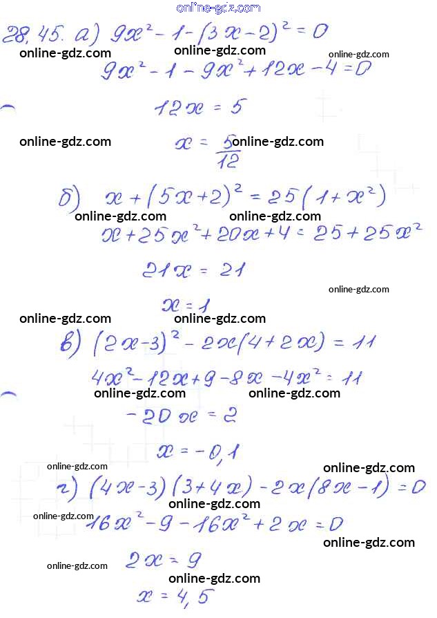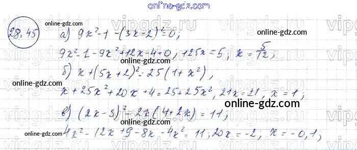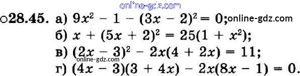 Готовые домашние задания по Алгебре за 7 класс Задачник Мордкович, Александрова Базовый уровень 2013 - § 28. Формулы сокращенного умножения Глава 6 45