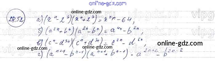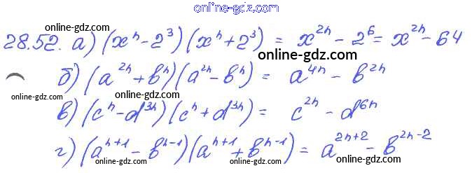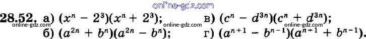 Готовые домашние задания по Алгебре за 7 класс Задачник Мордкович, Александрова Базовый уровень 2013 - § 28. Формулы сокращенного умножения Глава 6 52
