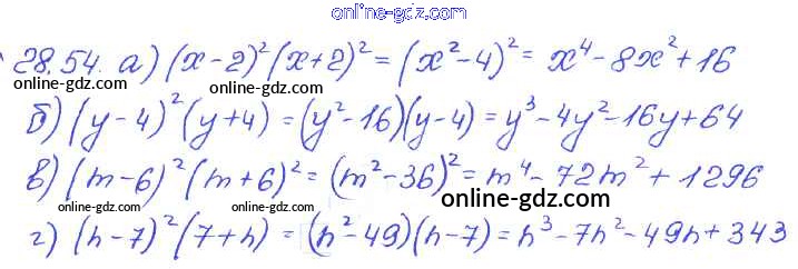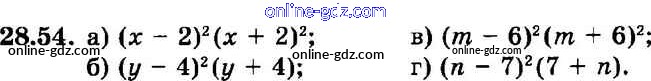 Готовые домашние задания по Алгебре за 7 класс Задачник Мордкович, Александрова Базовый уровень 2013 - § 28. Формулы сокращенного умножения Глава 6 54