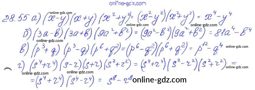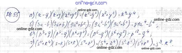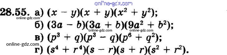 Готовые домашние задания по Алгебре за 7 класс Задачник Мордкович, Александрова Базовый уровень 2013 - § 28. Формулы сокращенного умножения Глава 6 55