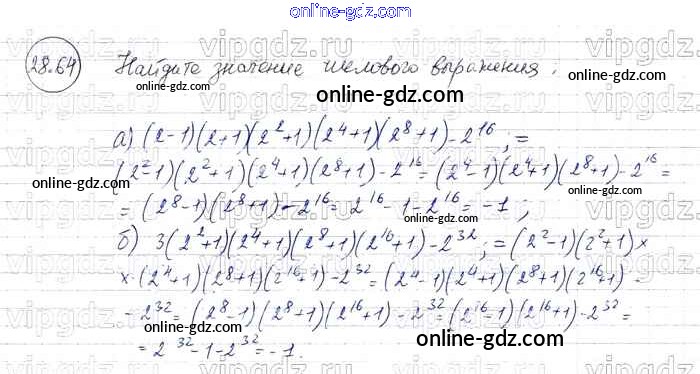 Готовые домашние задания по Алгебре за 7 класс Задачник Мордкович, Александрова Базовый уровень 2013 - § 28. Формулы сокращенного умножения Глава 6 64