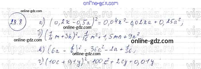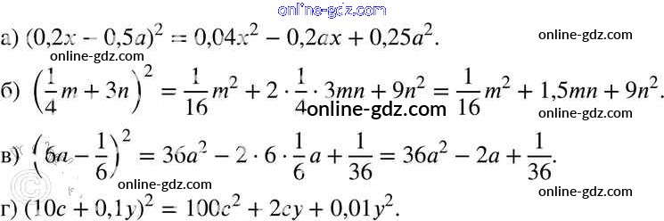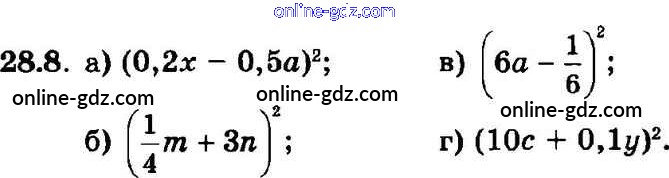Готовые домашние задания по Алгебре за 7 класс Задачник Мордкович, Александрова Базовый уровень 2013 - § 28. Формулы сокращенного умножения Глава 6 8