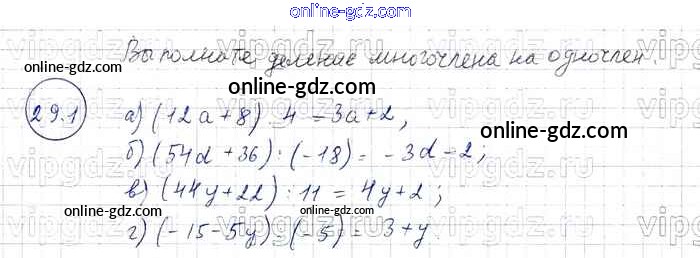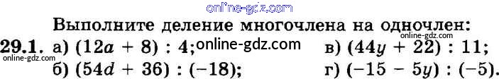 Готовые домашние задания по Алгебре за 7 класс Задачник Мордкович, Александрова Базовый уровень 2013 - § 29. Деление многочлена на одночлен Глава 6 1