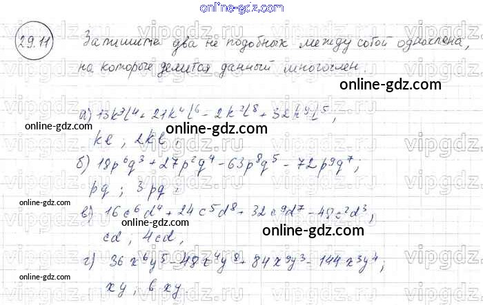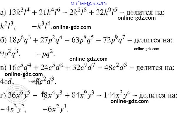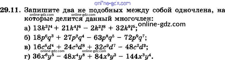 Готовые домашние задания по Алгебре за 7 класс Задачник Мордкович, Александрова Базовый уровень 2013 - § 29. Деление многочлена на одночлен Глава 6 11