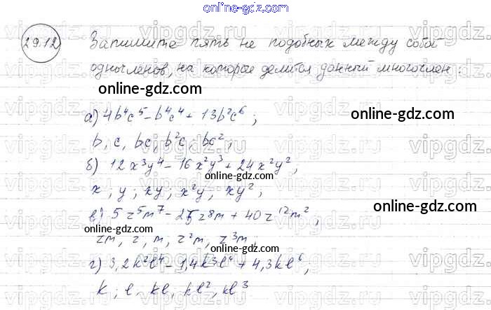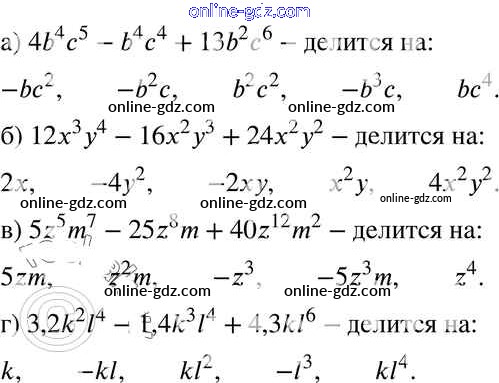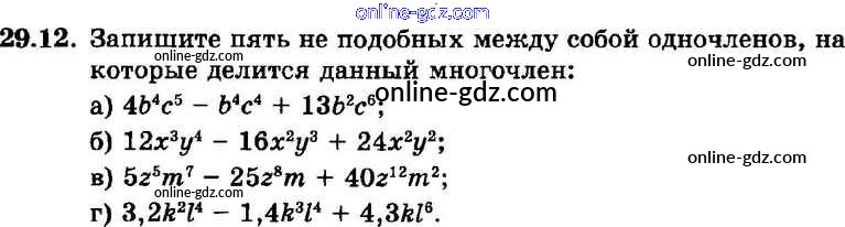 Готовые домашние задания по Алгебре за 7 класс Задачник Мордкович, Александрова Базовый уровень 2013 - § 29. Деление многочлена на одночлен Глава 6 12