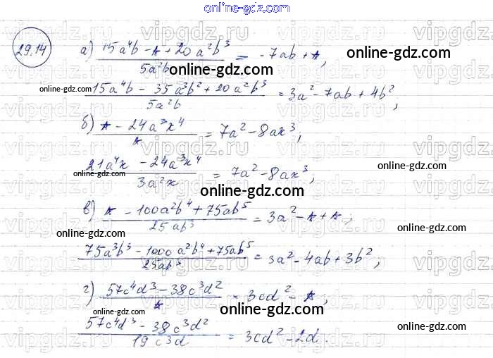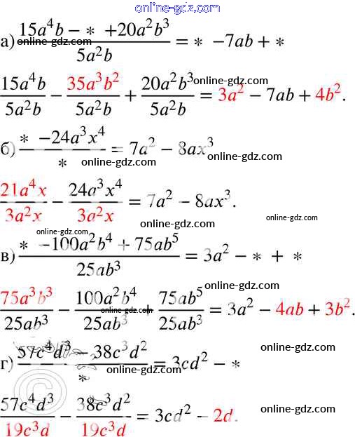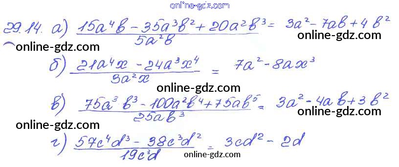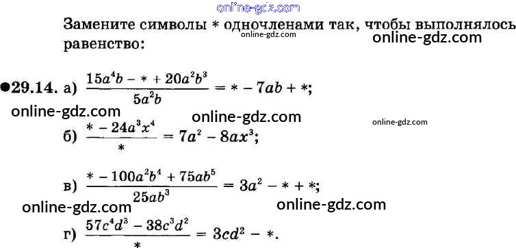 Готовые домашние задания по Алгебре за 7 класс Задачник Мордкович, Александрова Базовый уровень 2013 - § 29. Деление многочлена на одночлен Глава 6 14