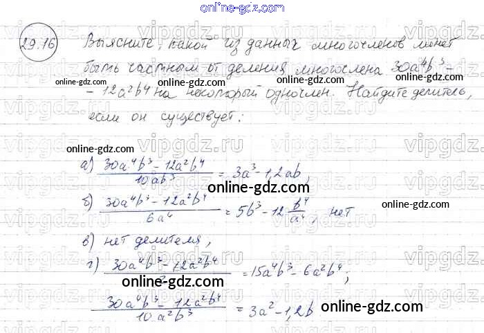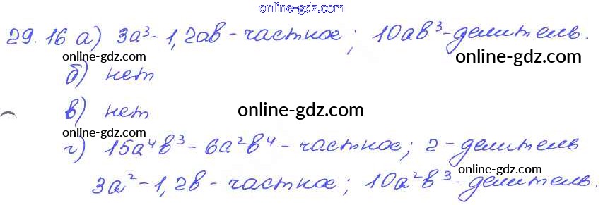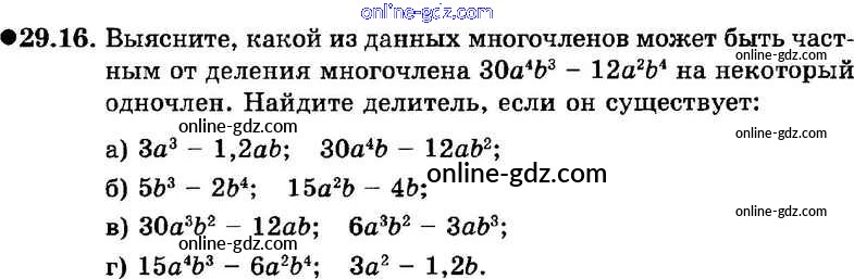 Готовые домашние задания по Алгебре за 7 класс Задачник Мордкович, Александрова Базовый уровень 2013 - § 29. Деление многочлена на одночлен Глава 6 16