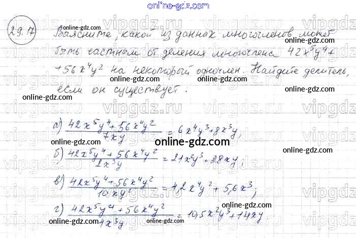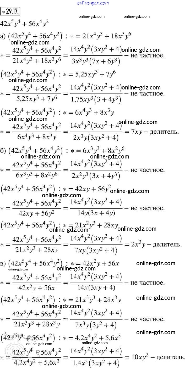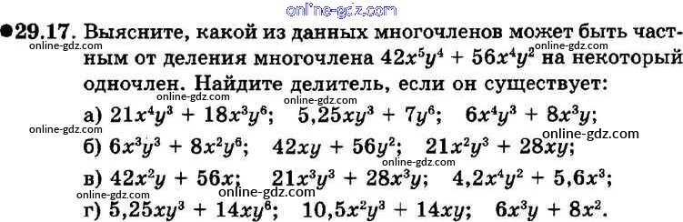 Готовые домашние задания по Алгебре за 7 класс Задачник Мордкович, Александрова Базовый уровень 2013 - § 29. Деление многочлена на одночлен Глава 6 17