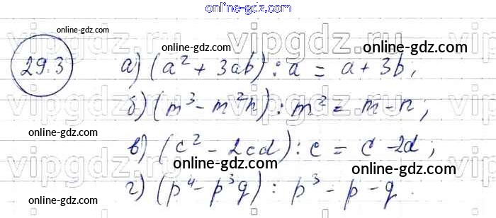 Готовые домашние задания по Алгебре за 7 класс Задачник Мордкович, Александрова Базовый уровень 2013 - § 29. Деление многочлена на одночлен Глава 6 3
