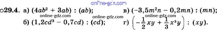 Готовые домашние задания по Алгебре за 7 класс Задачник Мордкович, Александрова Базовый уровень 2013 - § 29. Деление многочлена на одночлен Глава 6 4