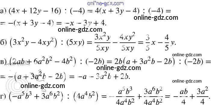 Готовые домашние задания по Алгебре за 7 класс Задачник Мордкович, Александрова Базовый уровень 2013 - § 29. Деление многочлена на одночлен Глава 6 5