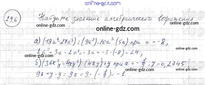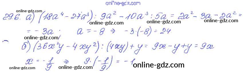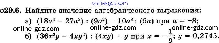Готовые домашние задания по Алгебре за 7 класс Задачник Мордкович, Александрова Базовый уровень 2013 - § 29. Деление многочлена на одночлен Глава 6 6