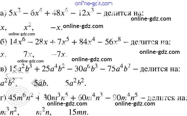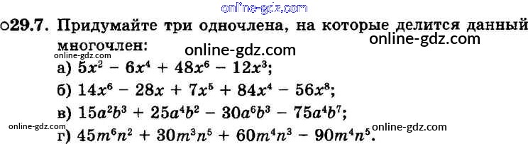 Готовые домашние задания по Алгебре за 7 класс Задачник Мордкович, Александрова Базовый уровень 2013 - § 29. Деление многочлена на одночлен Глава 6 7
