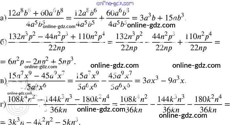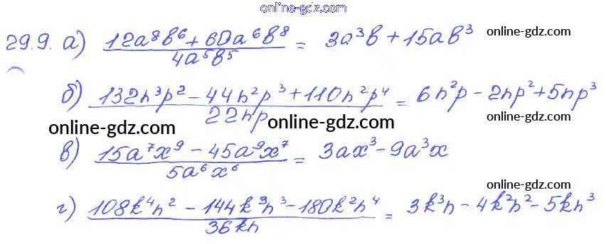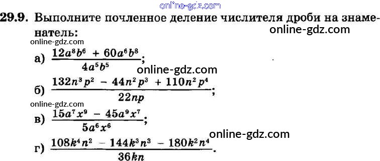 Готовые домашние задания по Алгебре за 7 класс Задачник Мордкович, Александрова Базовый уровень 2013 - § 29. Деление многочлена на одночлен Глава 6 9