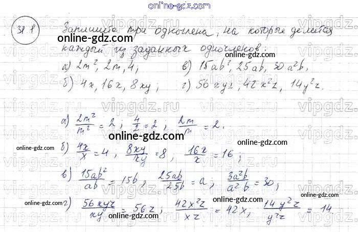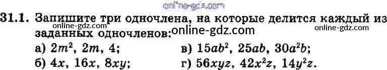 Готовые домашние задания по Алгебре за 7 класс Задачник Мордкович, Александрова Базовый уровень 2013 - § 31. Вынесение общего множителя за скобки Глава 7 1
