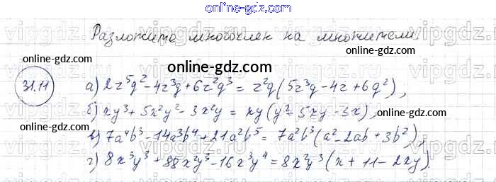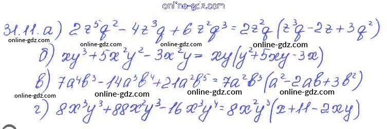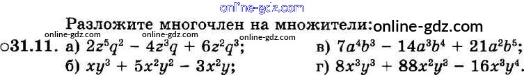 Готовые домашние задания по Алгебре за 7 класс Задачник Мордкович, Александрова Базовый уровень 2013 - § 31. Вынесение общего множителя за скобки Глава 7 11