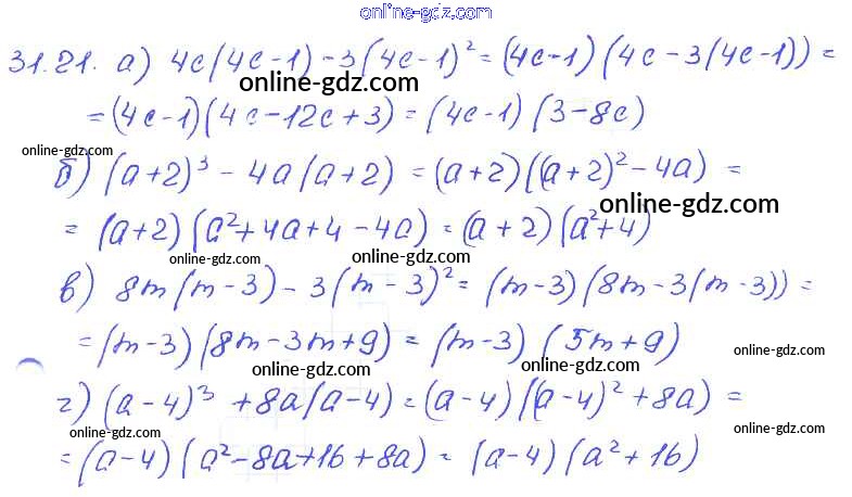 Готовые домашние задания по Алгебре за 7 класс Задачник Мордкович, Александрова Базовый уровень 2013 - § 31. Вынесение общего множителя за скобки Глава 7 21