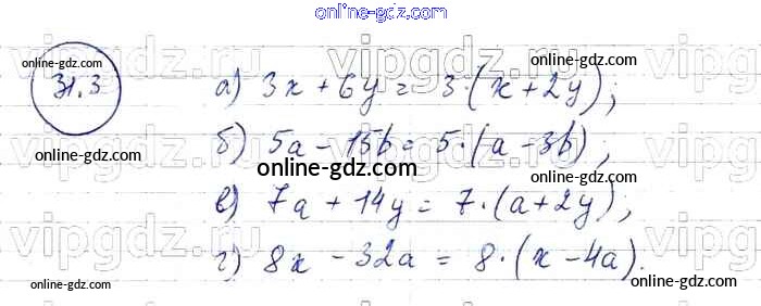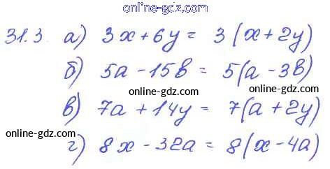 Готовые домашние задания по Алгебре за 7 класс Задачник Мордкович, Александрова Базовый уровень 2013 - § 31. Вынесение общего множителя за скобки Глава 7 3