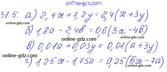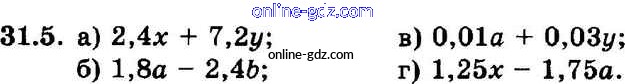 Готовые домашние задания по Алгебре за 7 класс Задачник Мордкович, Александрова Базовый уровень 2013 - § 31. Вынесение общего множителя за скобки Глава 7 5