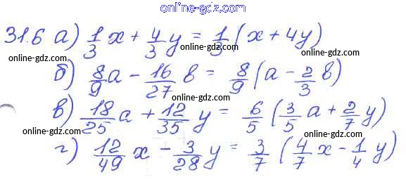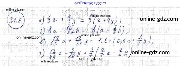 Готовые домашние задания по Алгебре за 7 класс Задачник Мордкович, Александрова Базовый уровень 2013 - § 31. Вынесение общего множителя за скобки Глава 7 6