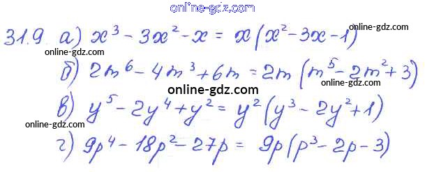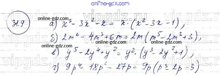 Готовые домашние задания по Алгебре за 7 класс Задачник Мордкович, Александрова Базовый уровень 2013 - § 31. Вынесение общего множителя за скобки Глава 7 9