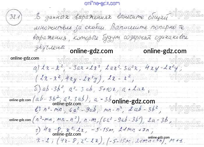 Готовые домашние задания по Алгебре за 7 класс Задачник Мордкович, Александрова Базовый уровень 2013 - § 32. Способ группировки Глава 7 1