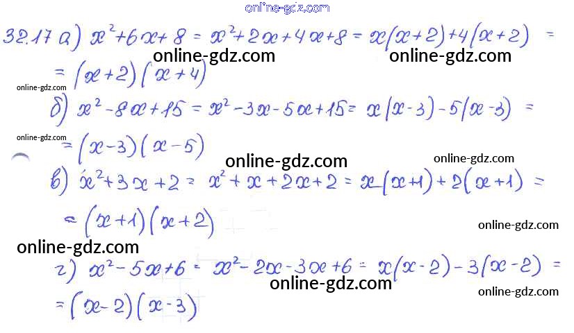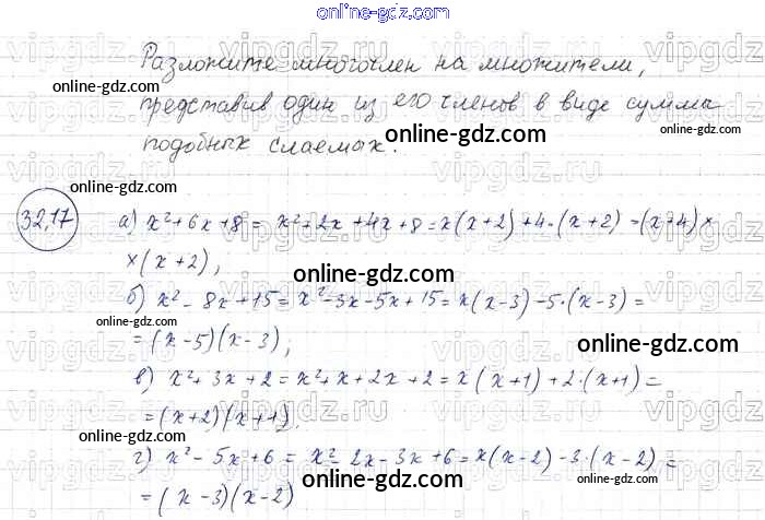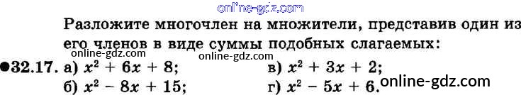 Готовые домашние задания по Алгебре за 7 класс Задачник Мордкович, Александрова Базовый уровень 2013 - § 32. Способ группировки Глава 7 17