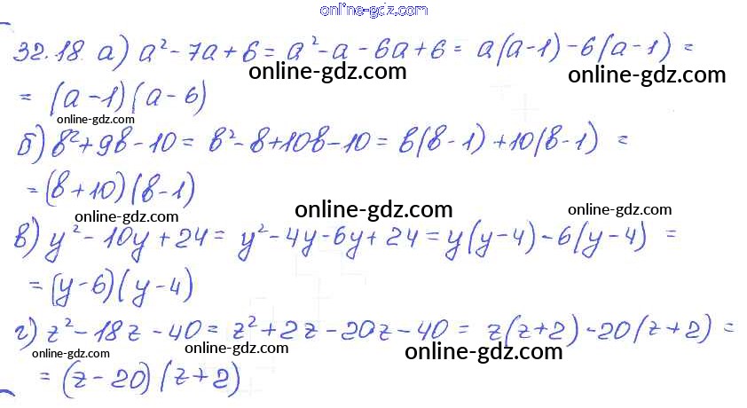 Готовые домашние задания по Алгебре за 7 класс Задачник Мордкович, Александрова Базовый уровень 2013 - § 32. Способ группировки Глава 7 18