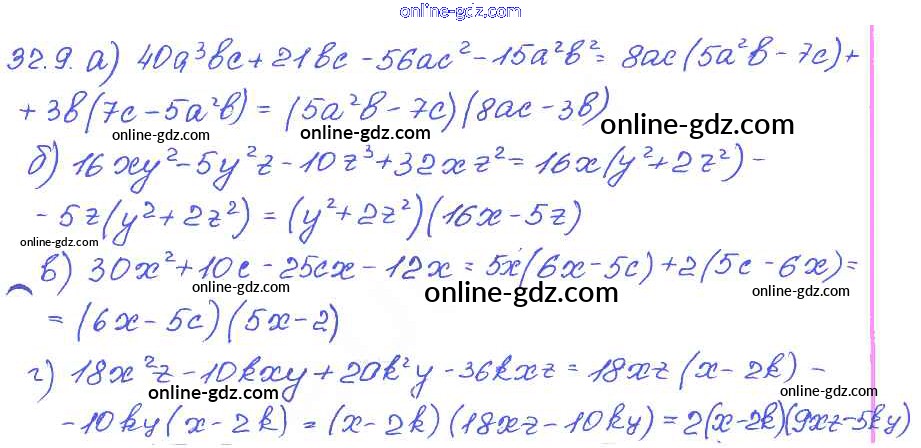 Готовые домашние задания по Алгебре за 7 класс Задачник Мордкович, Александрова Базовый уровень 2013 - § 32. Способ группировки Глава 7 9