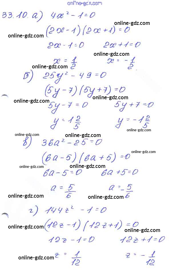 Готовые домашние задания по Алгебре за 7 класс Задачник Мордкович, Александрова Базовый уровень 2013 - § 33. Разложение многочленов на множители с помощью формул сокращенного умножения Глава 7 10