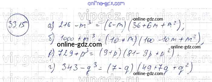 Готовые домашние задания по Алгебре за 7 класс Задачник Мордкович, Александрова Базовый уровень 2013 - § 33. Разложение многочленов на множители с помощью формул сокращенного умножения Глава 7 15