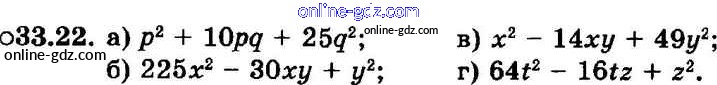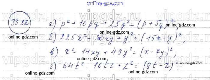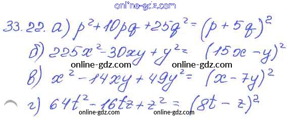 Готовые домашние задания по Алгебре за 7 класс Задачник Мордкович, Александрова Базовый уровень 2013 - § 33. Разложение многочленов на множители с помощью формул сокращенного умножения Глава 7 22