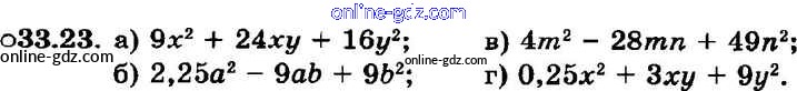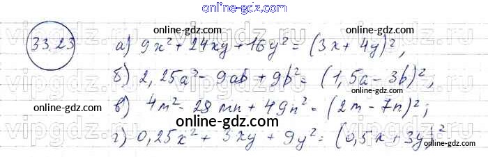Готовые домашние задания по Алгебре за 7 класс Задачник Мордкович, Александрова Базовый уровень 2013 - § 33. Разложение многочленов на множители с помощью формул сокращенного умножения Глава 7 23